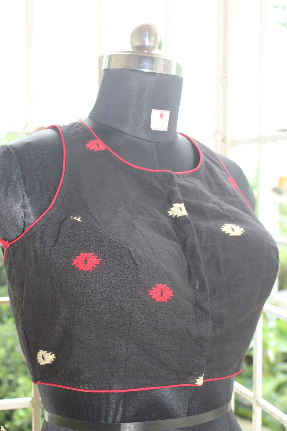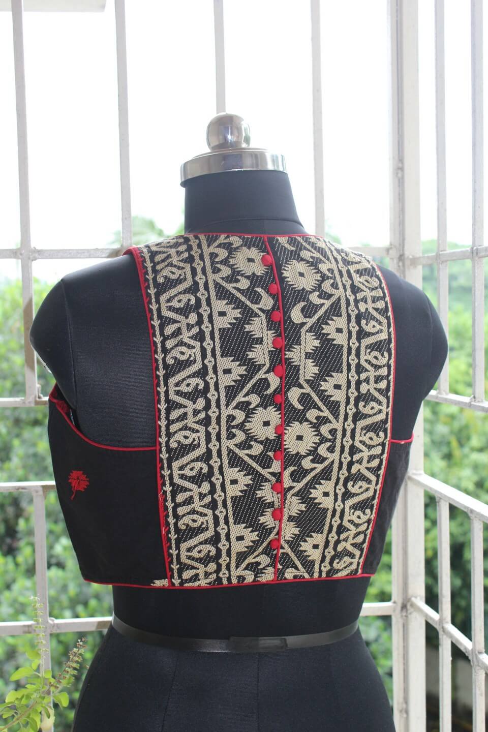 Ample margin with extra stitch lines is left on both sides of the blouse for further alterations, if needed