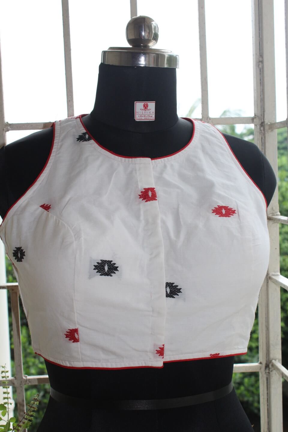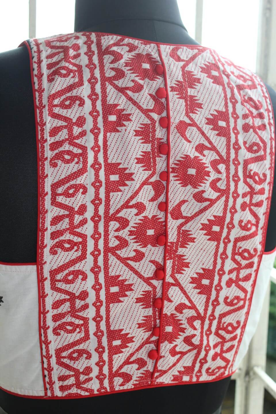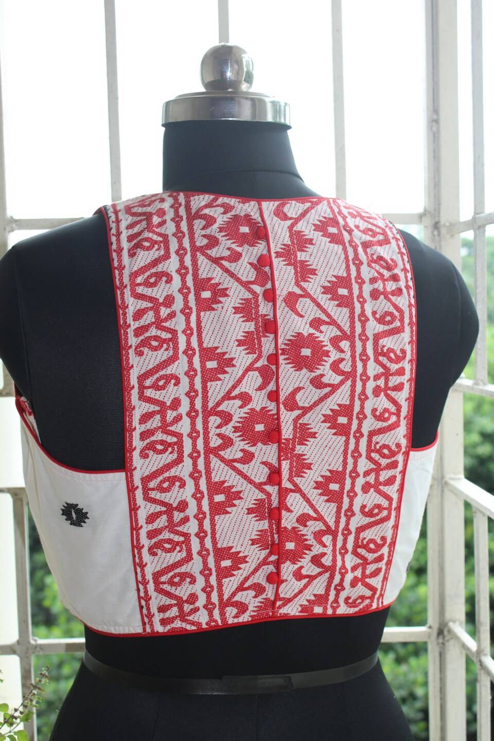 Ample margin with extra stitch lines is left on both sides of the blouse for further alterations, if needed
